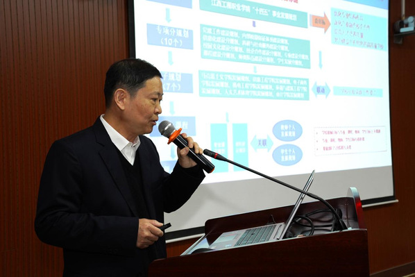 学院院长李汉平从体系构建、两链打造、螺旋运行、引擎驱动、平台建设和成效思考六个层面对学校内部质量保证体系诊改工作进行了汇报,并表示学院今后将进一步优化质量保证体系,进一步提升信息化建设水平,进一步培育质量文化特色,激发工作内生动力,促进全员自主诊改。