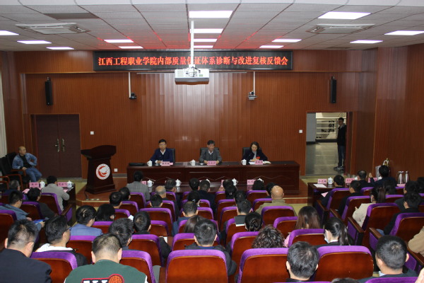 3月22日上午,按照江西省教育厅对必赢官网高职内部质量保证体系诊断与改进复核工作安排,学校召开教学诊断与改进复核工作反馈会。诊改复核专家组组长王成方反馈诊改复核意见,学校党委副书记、校长黄平槐做表态发言,诊改复核专家组副组长雷筱芬主持会议。诊改复核专家组成员,校党委委员罗军涛、校党委委员张明,工程职院党委书记杨近铬、院长李汉平,中层干部、专业课程负责人、教师代表和学生代表参加了会议。