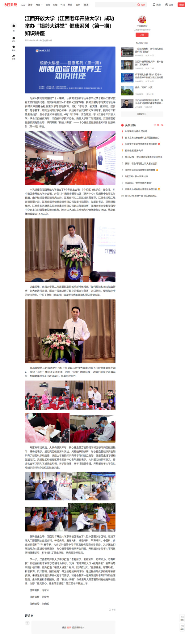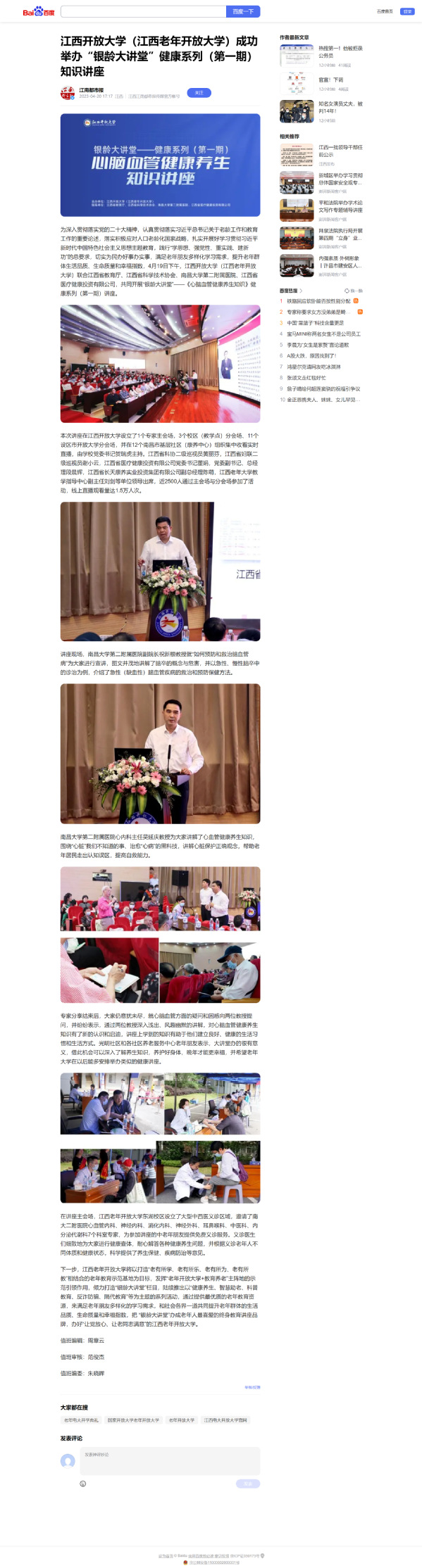 江南都市报:437必赢会员中心(江西老年开放大学)成功举办“银龄大讲堂”健康系列(第一期)知识讲座