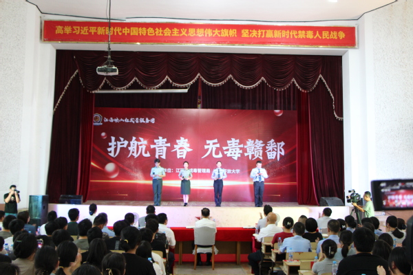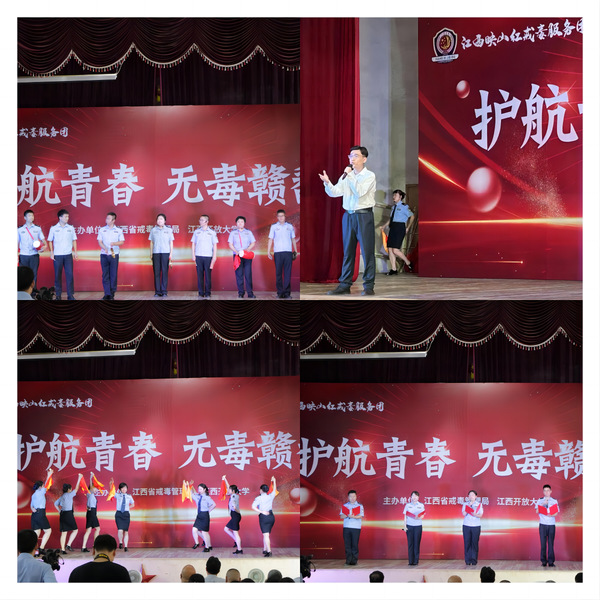 为确保学习贯彻习近平新时代中国特色社会主义思想主题教育取得实效走在前列,进一步践行为民服务宗旨,延伸戒治服务触角,促进全社会形成浓厚禁毒氛围,6月19日下午,在必赢官网青云谱校区大礼堂,由江西开放大学、江西省戒毒管理局联合举办的江西“映山红”戒毒服务团成立仪式暨“护航青春 无毒赣鄱”校园行专场禁毒宣传活动顺利举行。437必赢会员中心党委委员、党政办主任、统战部部长罗军涛,江西省戒毒管理局党委委员、政治部主任常民,共青团江西省委志愿服务和社会联络部负责人孙蔚等出席活动。