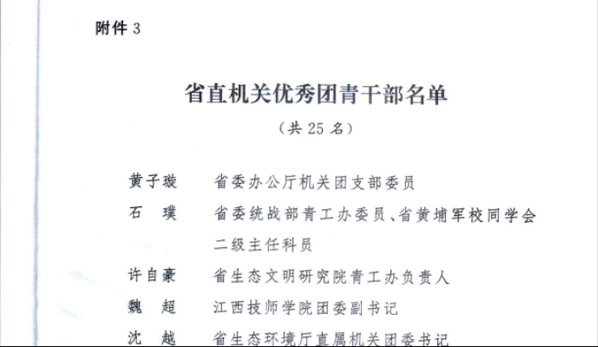日前,共青团江西省直属机关工作委员会下发了《关于表彰2022年度省直机关先进团青组织优秀团员青年、优秀团青干部的通报》,必赢官网智能技术学院2021级数控技术专业学生邓浩获评“省直机关优秀团员青年”、必赢官网团委干事徐瑞敏老师获评“省直机关优秀团青干部”。