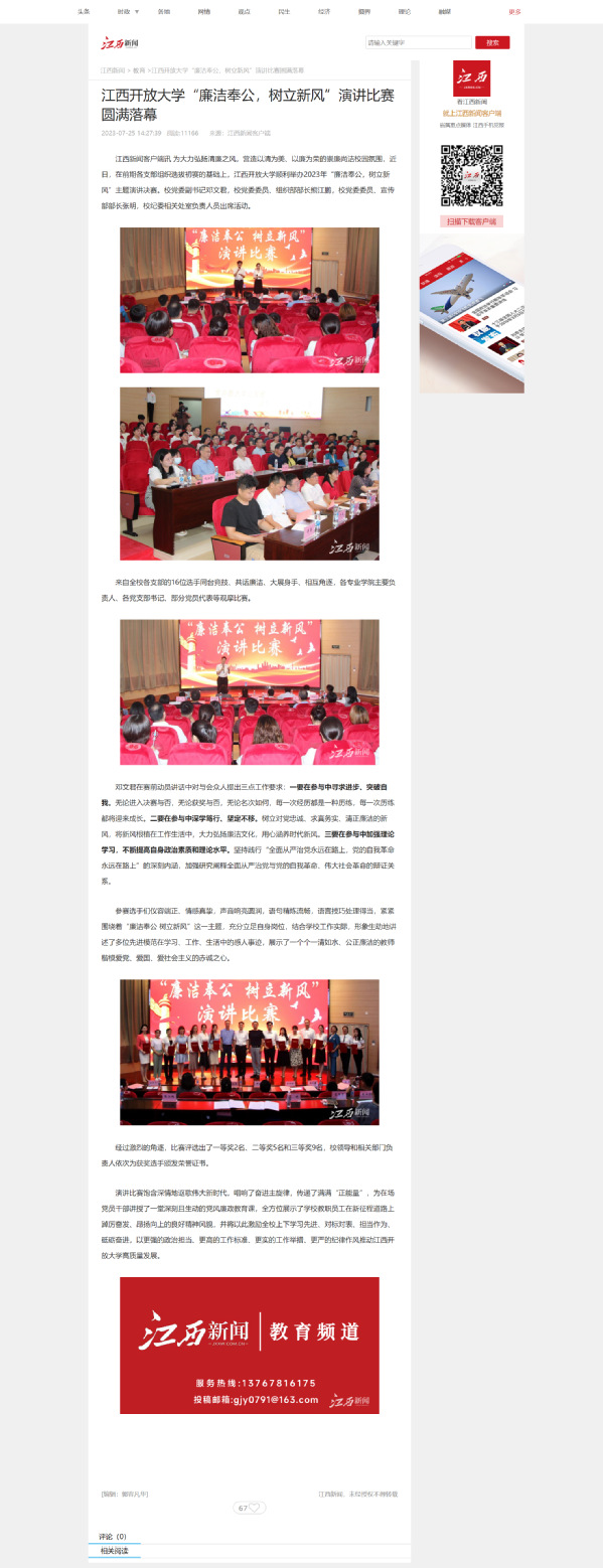 江西新闻:437必赢会员中心“廉洁奉公,树立新风”演讲比赛圆满落幕
