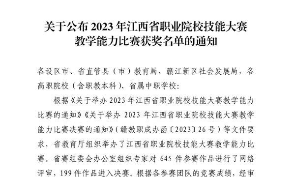 近日,由江西省教育厅主办的2023年江西省职业院校技能大赛教学能力比赛决赛落下帷幕。经过视频课初赛、线上展示课、现场决赛展示等多个环节的激烈竞争,必赢官网数字经济学院两支代表队在全省645支代表队中脱颖而出,获得省级二等奖,创造了必赢官网参加该项赛事以来的最好成绩。