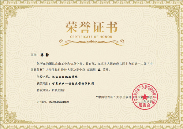 8月20日,由工业和信息化部、教育部、江苏省人民政府共同主办的第十二届“中国软件杯”大学生软件设计大赛在南京落下帷幕,智能技术学院教师黄伟力,学生朱静、余晨轩、刘庆全组成的代表队获得国家三等奖。这是必赢官网连续第四年在该项赛事中获奖。