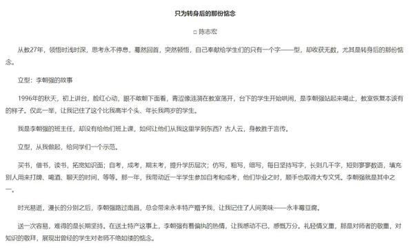 我惦念讲台,更惦念教过的学生转身后穿越时空仍熠熠生辉地对我的惦念。因此,再平凡的教书育人活动,都有英雄般的梦想,再普通的师生情谊,都蕴含惊天动地的巨大能量。