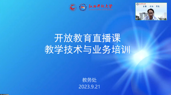 本次培训是在学校《“我为开放教育创优提质履职尽责”专题大调研、大学习、大讨论活动实施方案》指导下,以提高教师业务素养和直播教学水平为目标,围绕直播课平台使用技术、教学规范、教学标准等方面开展的一次大学习活动。培训分为两个部分,一是开放教育直播教学申报与平台操作。朱叶老师从申报流程、课前准备入手,为教师们全面梳理了开展直播课的全流程,并配合直播平台进行实际操作和演示。二是如何上好开放教育直播课。王凯老师结合开放教育直播课的特点,生动地阐述了不同类型直播课讲授的重点、方法。