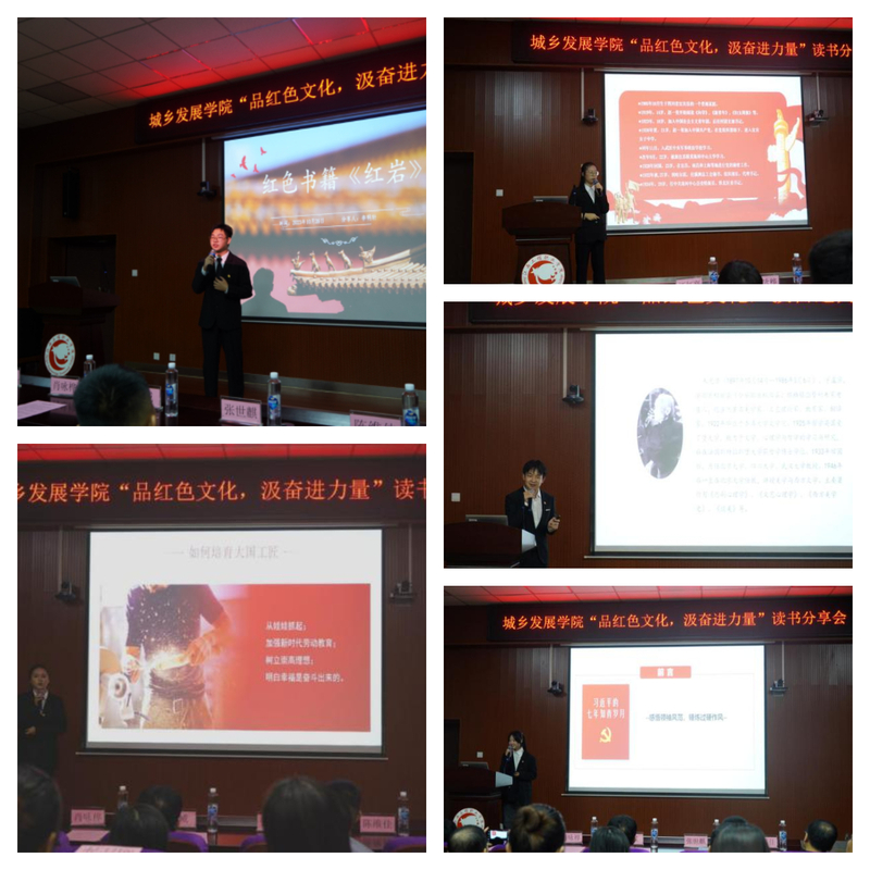 10月26日,城乡发展学院在207报告厅举办“品红色文化,汲奋进力量”读书分享会。学校相关部门负责人、各专业学院书记、团学科负责人和100余名学生参加了分享会。