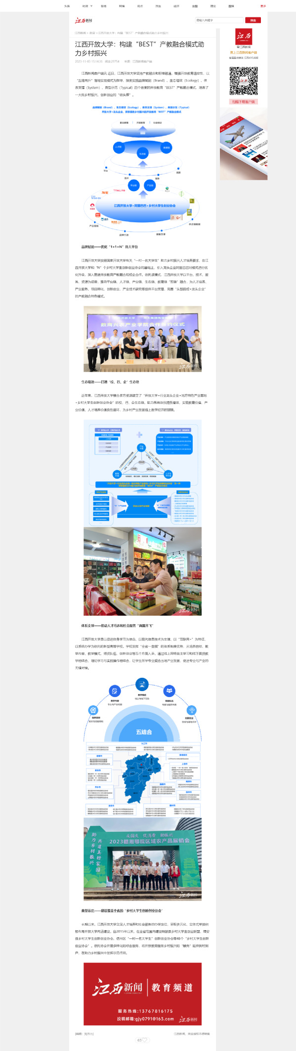 近日,437必赢会员中心坚持产教融合和职继融通,增强开放教育适应性,以“五维两升”落地实现模式为指导,探索实践品牌赋能(Brand)、生态增效(Ecology)、体系支撑(System)、典型示范(Typical)四个维度的开放教育“BEST”产教融合模式,培养了一大批乡村振兴、创新创业的“领头雁”。