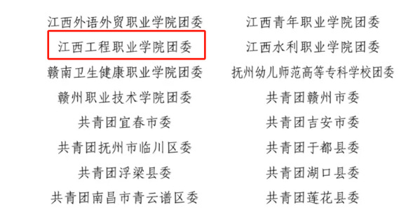 近日,中共江西省委宣传部、江西省文明办、江西省教育厅、共青团江西省委、江西省学生联合会,公布了通报表彰2023年江西省大中专学生志愿者暑期“三下乡”社会实践活动优秀单位、优秀团队以及优秀个人名单。江西工程职业学院团委荣获2023年江西省大中专学生志愿者暑期“三下乡”社会实践活动“优秀单位”;红船心向党志愿服务队和实践筑梦小队获“优秀团队”,徐瑞敏、黎骏辉、闵文翔、吉梦羽等四名师生获“优秀个人”。