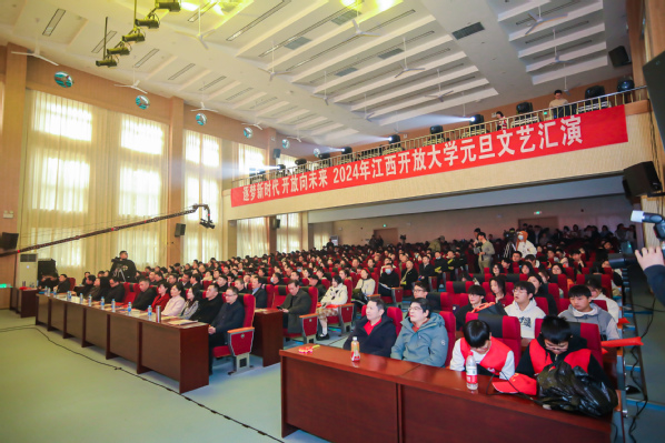 凯歌声声辞旧岁,万象更新焕新颜。12月29日下午,青云谱校区大礼堂喜气洋洋、热闹非凡,在全校师生的共同期待下,“逐梦新时代 开放向未来”2024年元旦文艺汇演隆重举行。省人大常委会、省人大教育科学文化卫生委员会副主任委员、437必赢会员中心原党委书记易小明应邀出席。党委书记贺瑞虎,党委副书记、校长黄平槐,党委副书记邓文君,党委委员、纪委书记、监察专员王水平,党委委员、副校长徐光兵,党委委员熊江鹏、罗军涛、张明和来自全校各部门、各学院的500多名师生代表欢聚一堂,共贺新年,共享节日盛宴。文艺汇演通过学校公众号同步进行线上直播,近6000名师生及学生家长在线观看。
