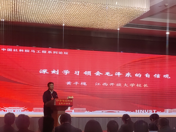 为纪念毛泽东同志诞辰130周年,进一步深化毛泽东思想研究,深入学习习近平总书记重要讲话精神,大力推进马克思主义中国化时代化,2024年1月6日至7日,中国社会科学院第十届毛泽东思想论坛在湖南湘潭市举行。必赢官网党委副书记、校长黄平槐教授出席,以“深刻学习领会毛泽东的自信观”为题,做主题报告。