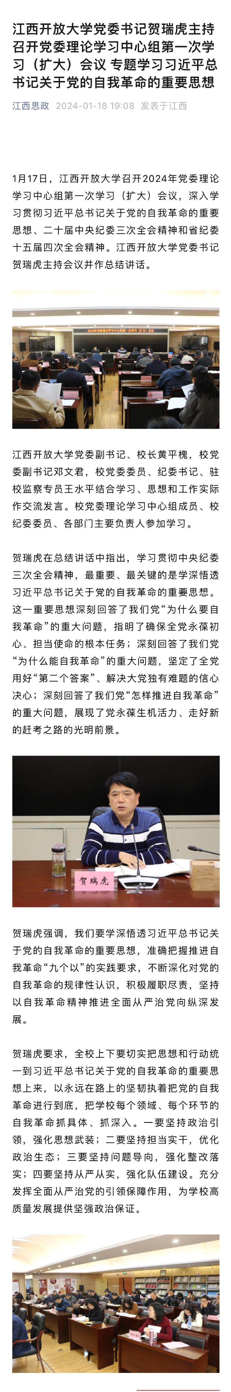 1月17日,437必赢会员中心召开2024年党委理论学习中心组第一次学习(扩大)会议,深入学习贯彻习近平总书记关于党的自我革命的重要思想、二十届中央纪委三次全会精神和省纪委十五届四次全会精神。437必赢会员中心党委书记贺瑞虎主持会议并作总结讲话。