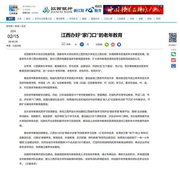 原文地址:http://www.jx.xinhuanet.com/20240215/7943626f46d9494b9c6831697aad83a3/c.html