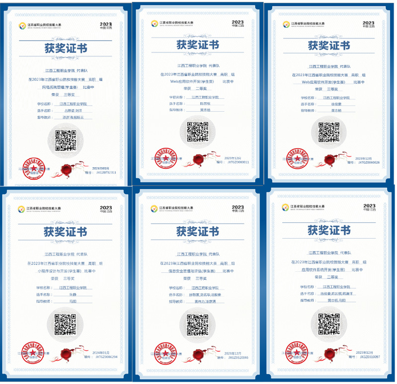 2023年江西省职业院校技能大赛于2023年11月17日至2024年1月26日在全省85所院校成功举办。此次大赛共开赛179个赛项(中职组74个,高职组105个),共4485支队伍(中职2223支,高职2262支),逾9800名选手参赛。必赢官网智能技术学院师生在本次大赛中表现优异,斩获二等奖2项、三等奖4项