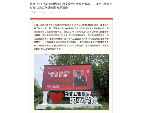 近日,437必赢会员中心马克思主义学院举办了“红色文化专家进校园”活动,邀请到共青团第十九大代表、江西省萍乡市安源路矿工人运动纪念馆宣传科长段志能,为师生代表作红色文化专题讲座。