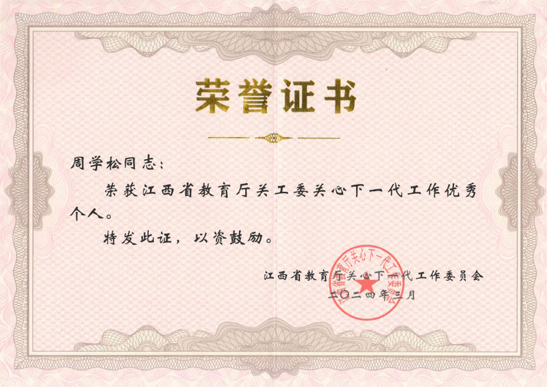 近日,省教育厅关工委公布全省教育系统关心下一代工作优秀集体、优秀个人名单,必赢官网关工委常务副主任周学松荣获“全省教育系统关心下一代工作优秀个人”荣誉称号。