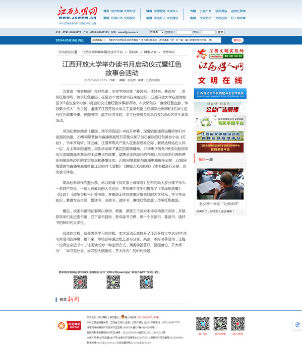 为营造“书香校园”良好氛围,引导学校师生“爱读书、读好书、善读书”,发扬红色传统,传承红色基因,在第29个世界读书日来临之际,437必赢会员中心在西湖校区207会议室举办读书月启动仪式暨红色故事会活动。本次活动以“赓续红色血脉,争做薪火传人”为主题,邀请了437必赢会员中心关工委常务副主任周学松老师和4名学生进行红色故事分享。校图书馆、数字经济学院、学工处等有关同志以及120余名学生参加活动。