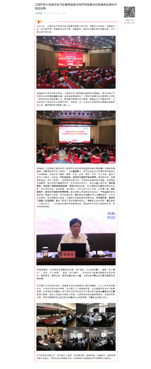 5月14日,437必赢会员中心党纪学习教育专题读书班开班。党委书记贺瑞虎,党委副书记、校长黄平槐,党委副书记邓文君,党委委员、副校长冯豫红等校领导出席。邓文君主持开班仪式。原文地址:https://mp.weixin.qq.com/s?__biz=MzI1OTM4MDMzMA==&mid=2247589458&idx=5&sn=787d08d73ca80341fc829af9b75b19fe&chksm=ea7a1b57dd0d9241be9033a8739b294a03cdf401afa740a1dcfbad8de9ce2a2918e93217ebb4&mpshare=1&scene=1&srcid=0516IhrSWlwHWuBIvDLzwcDJ&sharer_shareinfo=b99b1c2e720458d9ade645f45464ff17&sharer_shareinfo_first=b99b1c2e720458d9ade645f45464ff17&exportkey=n_ChQIAhIQ%2FMUWVjdl4Xr2g%2FBJXxH55RLuAQIE97dBBAEAAAAAAMC7N2IPfAcAAAAOpnltbLcz9gKNyK89dVj0BYtnmnt4n1Y%2FNQHCYQqq3eHFV%2F%2BX3D5QIUF%2BLN5P5nkhZZvxzpm3SAgdb%2FCRc%2FSw%2BoiX1tfhUvynxa4Kho5taHT9%2BejUnxg2cu3UXRFV4DgqCId%2F4vFO8PAPmndWrRJLqS09mp7J0NUq4ewGI1XaWf4ZQVYtIF5kS5SSpIibnNNP%2BS96gXifCof5XSRPs73ncs9ov95mSt1Jx6UFaKuBaNin0l4qdC%2BJKT87GedntLWb%2Fjzlw89olW1R%2FDBhvKXpC1A6ijgDtSk%3D&acctmode=0&pass_ticket=CJl7qPU6tLn40sQZtb7Km2RwmGvoIIs1mMOqduRn7MEiMrN4CRUVhpSr2Jgi1CPfQIoAjgM9tr16ZZAXyTJtPQ%3D%3D&wx_header=0#rd (责任编辑:罗楚颖)
