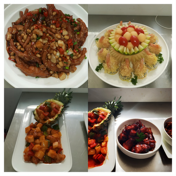 烹饪工艺与营养专业学生举办了中式烹调工艺专业技能展示活动。烹饪过程中,同学们执着专注、一丝不苟,展现出精益求精的工匠精神和职业精神。东坡肉色泽鲜亮、口感甘滑,金丝虾球造型饱满、虾肉Q弹,辣子鸡丁鲜辣干脆、满口香酥,香辣凤爪咸香适口、让人欲罢不能,充分展现了中式烹调“中和之美”。