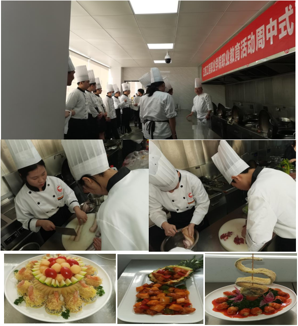 烹饪工艺与营养专业学生举办了中式烹调工艺专业技能展示活动。烹饪过程中,同学们执着专注、一丝不苟,展现出精益求精的工匠精神和职业精神。东坡肉色泽鲜亮、口感甘滑,金丝虾球造型饱满、虾肉Q弹,辣子鸡丁鲜辣干脆、满口香酥,香辣凤爪咸香适口、让人欲罢不能,充分展现了中式烹调“中和之美”。