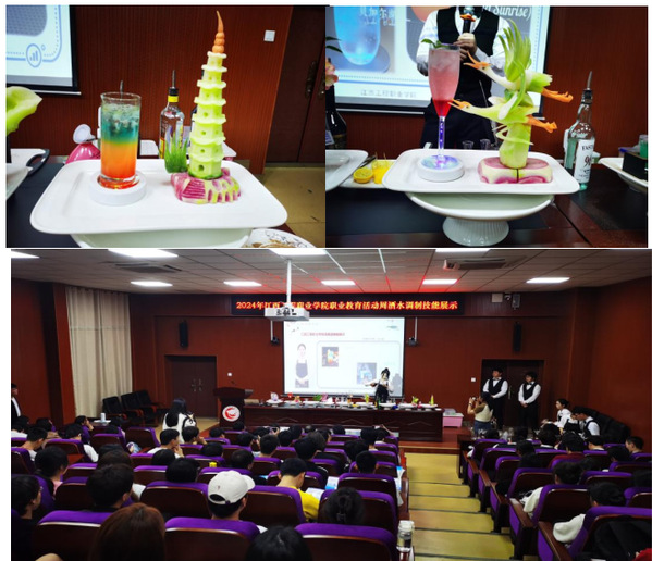 酒店管理与数字化运营专业学生开展了酒水调制技能展示活动。同学们竭力将自己最好的状态展示出来,有挑战多层分层酒水调制的、有炫出两段式调酒壶帅气操作的、有精心设计自创鸡尾酒的……酒水调制技能是该专业拓展课程的重要技能,现场展示不仅要求学生熟悉各类酒水,还需要有良好的心理素质,对学生的综合素质要求较高。