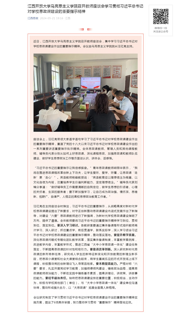近日,437必赢会员中心马克思主义学院召开教师座谈会,集中学习习近平总书记对学校思政课建设作出的重要指示精神。会议由马克思主义学院院长汪红亮主持。原文地址:https://mp.weixin.qq.com/s?__biz=MzI1OTM4MDMzMA==&mid=2247589726&idx=1&sn=f4727baa972d9d682986a861d09a299c&chksm=ea7a1a5bdd0d934de8bf7db323158a5f1302b69147a3c064cc0048db207350fd9fcf013dc40a&mpshare=1&scene=1&srcid=0521TSdnXrx5XIkOTHR6jiiO&sharer_shareinfo=2f66ce55f7051cfa5e809fbeb8be135a&sharer_shareinfo_first=2f66ce55f7051cfa5e809fbeb8be135a&exportkey=n_ChQIAhIQVMv4iU477LjWZCQCq0RuORL1AQIE97dBBAEAAAAAAAzZAgDPP9YAAAAOpnltbLcz9gKNyK89dVj0Q%2BTjawMIX9vWmnbrdm%2BEYdRNHYjz2vY0SnJY9d9ckePogvsydyOZ2sQ%2FHWBm7IoMG98q8dFdAw9Dk4hyTusu%2FtDWvTxySZA8DXRh91cPKF6dPIZ3SWa86OJFwzAvW0s6YsDlQfDfmO33jhOascRvlVgdC2YSytZUAkkBKYUuNNHqTlBZZrwyN2JH2kYq%2FXgB1gyqOEiwNVedHNbnCE9yow3RTuzRU5ayV6cWr9%2FnthnLzj7%2F0lEuVGHifBuCSy%2BO01UmuXohmnol06y9vdt%2F&acctmode=0&pass_ticket=naWhV2WfNH0AFh73AIgKrDMHF442MHuvf4UDb1M4KyXV%2B3UFbx9a%2BeJ7jGO%2BOl%2Bl&wx_header=0#rd (责任编辑:罗楚颖)