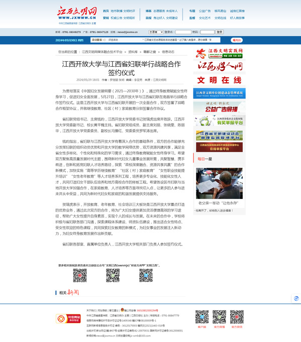 5月27日,437必赢会员中心与江西省妇联在南昌举行战略合作签约仪式。这是437必赢会员中心与江西省妇联开展的一次全面合作,双方签署了战略合作框架协议,并就继续教育、社区(村)家庭教育分别签署合作协议。