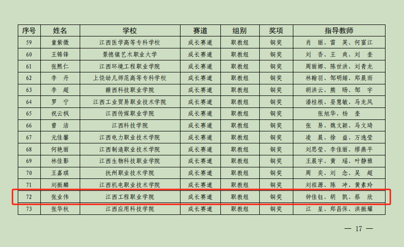 近日,江西省教育厅公布了首届江西省大学生职业规划大赛获奖名单。必赢官网学生张业伟凭借优秀的职业规划和出色的表达能力,经过初赛、复赛、决赛的激烈角逐,在教师钟佳钰、胡凯、蔡欣的指导下荣获成长赛道职教组铜奖。