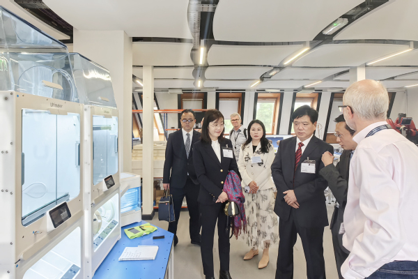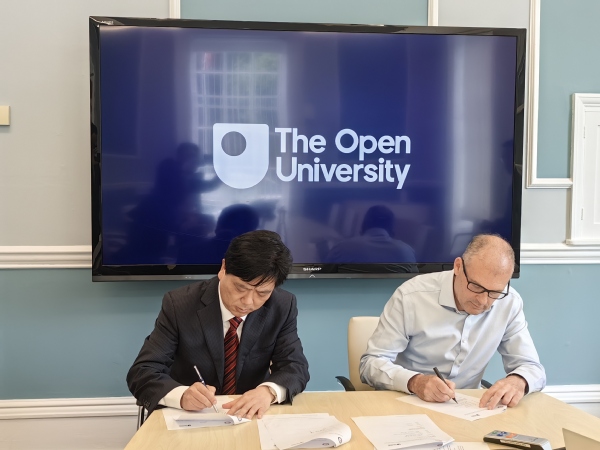在英国开放大学访问期间,贺瑞虎与该校副校长Kevin Shakesheff教授进行了深入交流。重点围绕开放教育教学质量提升、教学支持服务、师资队伍建设、课程设计以及教师赴英培训等事宜进行充分商讨,双方就进一步深化交流合作、推动两校关系迈上新台阶达成共识,贺瑞虎代表学校签署了《437必赢会员中心与英国开放大学合作谅解备忘录》。交流结束后,学校代表团受邀参观了该校远程教育实训中心OPENSTEAM实验室。