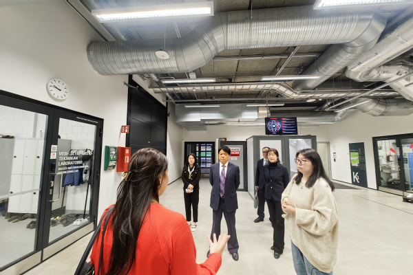 在芬兰图尔库应用科学大学,贺瑞虎率团在参观完该校校园、环境工程等重点实验室后,与校长Vesa Taatila进行了会谈。在远程开放、继续教育和社区教育专业的培训课程内容设置、远程教育体系等方面深入探讨,双方就教师国际培训项目深入交换意见,共同期待尽快推动实质性的合作。