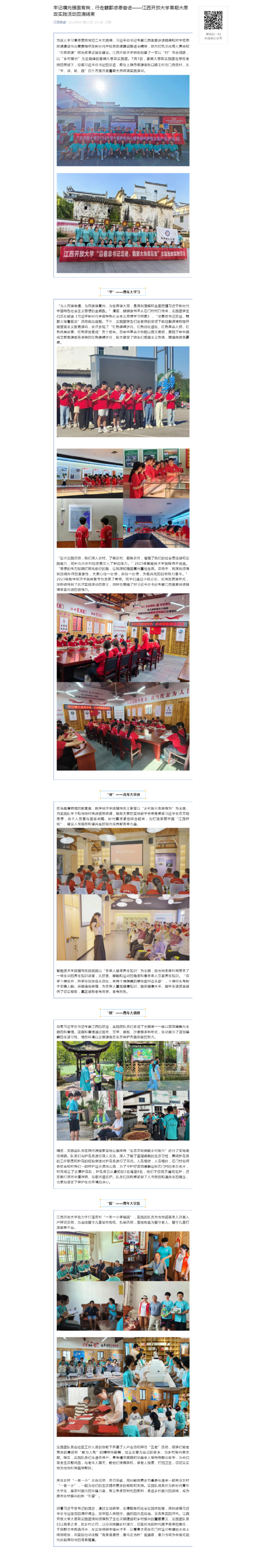 为深入学习宣传贯彻党的二十大精神、习近平总书记考察江西重要讲话精神和对学校思政课建设作出重要指示及新时代学校思政课建设推进会精神,助力红色文化育人高地和“大思政课”综合改革试验区建设。437必赢会员中心积极组建了一支以“村”为主线路,以“乡村振兴”为主旋律的暑期大思政实践团。7月3日,暑期大思政实践团在学校老师的带领下,沿着习近平总书记的足迹,前往上饶市婺源县秋口镇王村石门自然村,从“学、讲、研、践”四个方面开展暑期大思政课实践活动。
