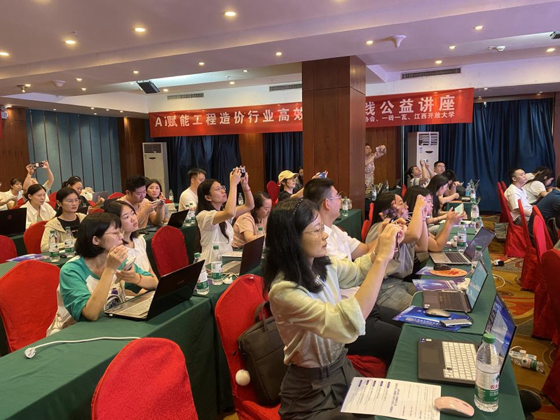 讲座中设置了智慧办公案例分享与互动环节,学员们亲身体验AI技术在工程造价领域的实际应用成果,现场氛围热烈,互动频繁。学员们围绕传统工作模式向AI化转型的开展了深入探讨,为未来工作提供了清晰的操作指南和思维启迪,助力他们在工作中更加自信地拥抱AI技术。