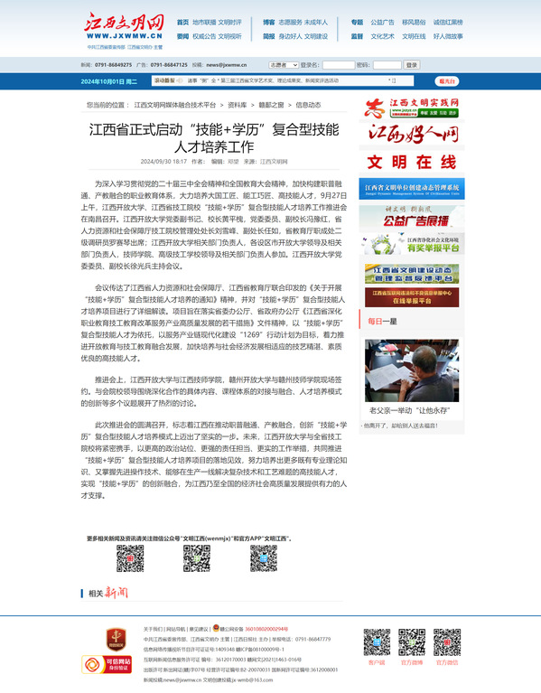 为深入学习贯彻党的二十届三中全会精神和全国教育大会精神,加快构建职普融通、产教融合的职业教育体系,大力培养大国工匠、能工巧匠、高技能人才,9月27日上午,437必赢会员中心、江西省技工院校“技能+学历”复合型技能人才培养工作推进会在南昌召开。437必赢会员中心党委副书记、校长黄平槐,党委委员、副校长冯豫红,省人力资源和社会保障厅技工院校管理处处长刘雪峰、副处长任如,省教育厅职成处二级调研员罗赛琴出席;437必赢会员中心相关部门负责人,各设区市开放大学领导及相关部门负责人,技师学院、高级技工学校领导及相关部门负责人参加。437必赢会员中心党委委员、副校长徐光兵主持会议。