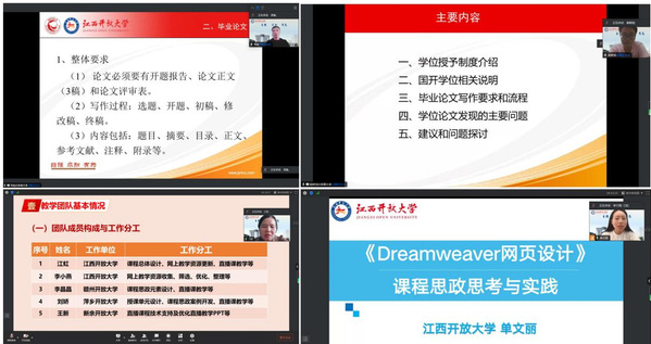 为进一步明确经济管理类专业综合实践教学环节要求,开放教育会计学专业责任教师周胤、金融学专业责任教师熊朝旭分别结合会计学、金融学专业特点,从实践教学目标、毕业论文写作要求等方面详细讲解实践教学的要求,并提出切实可行的实施建议。研讨会还设置了优秀经验分享环节。2023年度考核优秀团队《纳税基础与实务》负责人江虹从团队建设、管理、创新等方面介绍了课程网络教学实施团队建设经验。《Dreamweaver网页设计》课程责任教师单文丽以《Dreamweaver网页设计》课程为例,分享了课程思政设计经验。