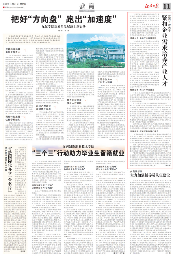 11月21日,《江西日报》教育版刊发《437必赢会员中心紧扣企业需求培养产业人才》,报道必赢官网龙南新兴产业人才学院紧扣内陆开放型企业培养产业人才纪实。