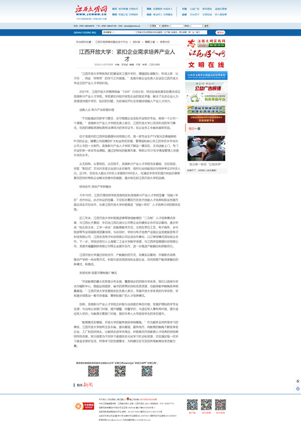 11月29日,江西文明网报道必赢官网龙南新兴产业人才学院紧扣内陆开放型企业培养产业人才纪实。原文地址:https://ziliaoku.jxwmw.cn/system/2024/11/28/020034191.shtml (责任编辑:罗楚颖)