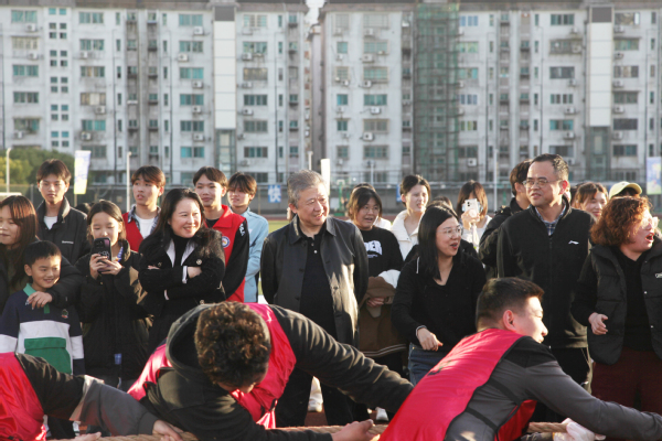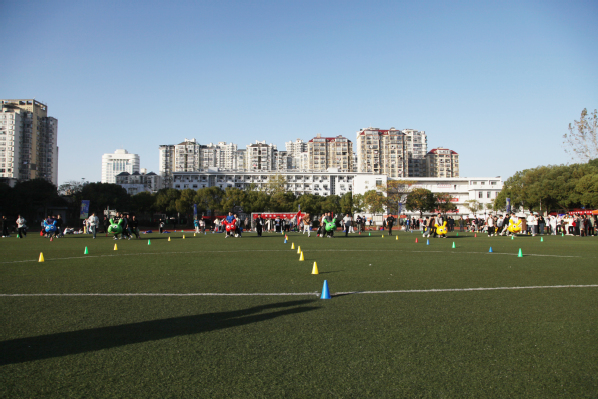 初冬艳阳下,趣味运动会在一片欢呼雀跃声中拉开了序幕,8人×50米接力跑、四人五足、袋鼠跳、背夹球、毛毛虫、掷沙包、拔河等团体、个人项目相继开赛,绿色操场上跃动着矫健的步伐,赛场上加油助威声此起彼伏、不绝于耳,参赛队员们精神抖擞、你追我赶,一个个拼搏的身影,一张张欢乐的笑脸,一次次将现场气氛推向高潮,整个赛场沉浸在热烈欢愉的氛围之中,尽情展现着同学们的昂扬姿态和青春风采。
