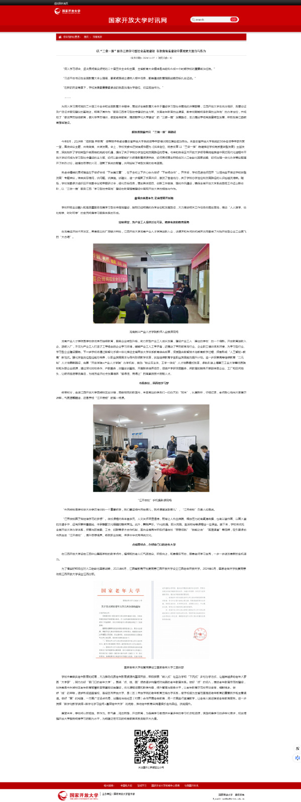 近日,国开时讯网在《深度观察》栏目发布《以“三做一推”服务江西学习型社会高地建设 在教育强省建设中展现更大担当与作为》一文,报道必赢官网以“三做一推”服务江西学习型社会高地建设纪实。