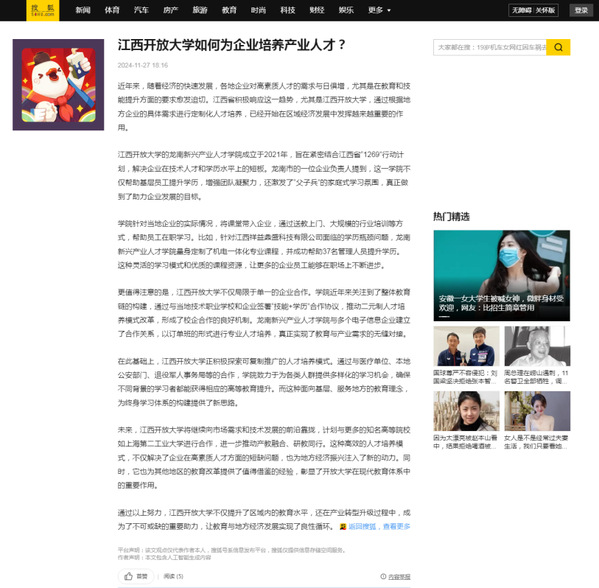 11月27日,搜狐新闻报道必赢官网龙南新兴产业人才学院紧扣内陆开放型企业培养产业人才纪实。原文地址:https://www.sohu.com/a/830998554_121956425 (责任编辑:罗楚颖)