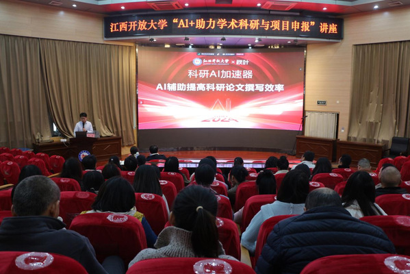 为贯彻落实党的二十届三中全会精神,推进教育数字化转型,同时提升必赢官网科研水平,活跃学术氛围,12月4日上午,学校特邀秋叶集团AI智能工作台项目开发总监哈雷老师为专业技术人员做“AI+助力学术科研与项目申报”学术讲座。讲座由科研处(学习型社会研究院)和江西省远程教育学会联合主办。学校各部门、各学院共计70余人现场聆听,部分教师通过视频直播在线收看。