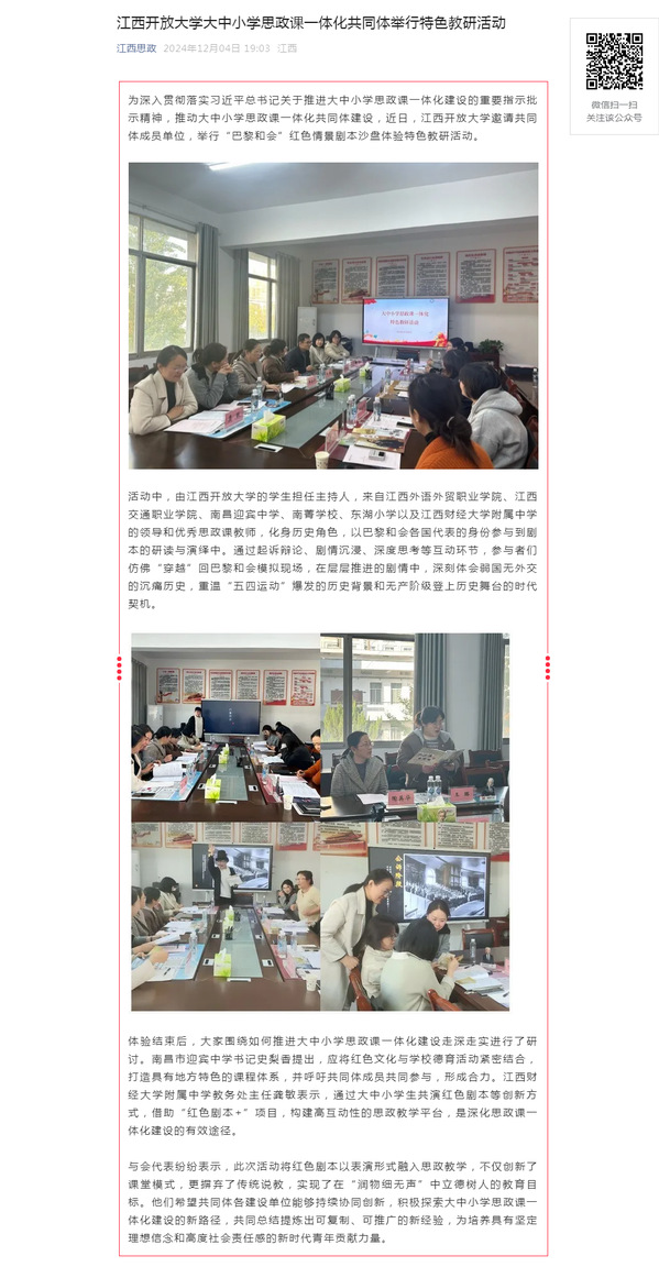 为深入贯彻落实习近平总书记关于推进大中小学思政课一体化建设的重要指示批示精神,推动大中小学思政课一体化共同体建设,近日,437必赢会员中心邀请共同体成员单位,举行“巴黎和会”红色情景剧本沙盘体验特色教研活动。原文地址:https://mp.weixin.qq.com/s?__biz=MzI1OTM4MDMzMA==&mid=2247605525&idx=5&sn=347c7fc20c69bb8813c0a2f184bde718&chksm=eb40253fde89bce9c55dfefdea2a23ad3bd8b26444638cf6bba9ba32f181f25e776407e59519&mpshare=1&scene=1&srcid=12063IJb8IrAzJps6UEiuuzV&sharer_shareinfo=08d1e4dfb735de6911e84874fd417edf&sharer_shareinfo_first=08d1e4dfb735de6911e84874fd417edf&exportkey=n_ChQIAhIQMk5J2Z%2BzwiO3eam73tdJkRL1AQIE97dBBAEAAAAAACf0J%2FK10ZEAAAAOpnltbLcz9gKNyK89dVj0NwoY6Z%2B3Av9lZfiKnjfzoi8E%2BoR9iqEIl6wFppF5agbbqP01rQBhlWnfEW3ulNohNK9stDrCKh1UYKstdt4q4W3RodwG0RgHGw5TOg5b9pjbcpfmjadUvQPRUspeJqpXoDz5HkwOQosjle3Hak5%2B3y6JhJbqixAdDC51I0eI007de9sRBr8OHssd6mhKQso2pI7n8ZHJ9zJjXXKWuykNh3SSkcUOtK%2BeFMalgfNrbfJfZ0rF8fMWTdY4nldYfBgks2okONYSF430npgBCNUp&acctmode=0&pass_ticket=xLPvSp9tqF3wdGtJemx3Audb%2FJEZ3vNInS9ue%2Bcp8epTSrMImGgrFBW47KD2Mpnj&wx_header=0#rd (责任编辑:罗楚颖)