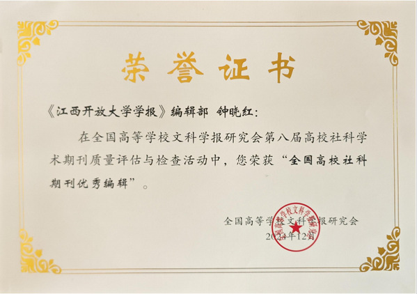 为推动我国高校学术期刊创新发展,不断提高学术期刊的核心竞争力和办刊水平,加强编辑队伍建设,提升编辑综合素质,全国高等学校文科学报研究会开展了研究会第八届高校社科学术期刊质量评优与检查活动。本次活动共评出优秀编辑232名,必赢官网学报编辑钟晓红获“全国高校社科期刊优秀编辑”称号。