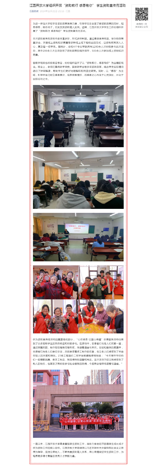 为进一步加大学校学生资助政策宣传力度,引导学生在全面了解资助政策的同时,知恩感恩,励志成才,切实发挥资助育人实效。近期,437必赢会员中心学生工作处组织开展了“资助前行 感恩有你”学生资助宣传月活动。原文地址:https://mp.weixin.qq.com/s?__biz=MzI1OTM4MDMzMA==&mid=2247606609&idx=2&sn=9cbb19b6bc608faf3b60c4ee813e2c50&chksm=ebd389f4e0d20059fdfcec1a145cadf7284a0ff87182b9cac123a1eebfbc74ed15b3accbc7fb&mpshare=1&scene=1&srcid=1225s4eLBmv2Losgp6CPJqLY&sharer_shareinfo=f415e660e0cef8a3b1997cc72e1c291a&sharer_shareinfo_first=f415e660e0cef8a3b1997cc72e1c291a&exportkey=n_ChQIAhIQLHcVHYn7iPBsVESoIkG7gRLgAQIE97dBBAEAAAAAANNbIne34QoAAAAOpnltbLcz9gKNyK89dVj0bg%2FZHFSfvyAlC1Ud%2FAghDuFnTDSq6%2BNIXOIqTd6%2FtofFfZ3tvAX%2FbDxsHEtI7h148zJePPZJQoxzCYLvAGnoW%2BV7jyW3WKnx62sVb3KuQh6I1UWIGOwYRGv%2BYuaOXrs5AEGWWz1OXTYO9aKpR6DRKBmZLlhFvTc5Jz4Iyh%2Bdm59L4ykB%2FIdCcRarFB%2F4iVms0a2namyCETUJFH346LWTprKADML52NLahZfAbE8uUROnfSrtNrOkGdsw&acctmode=0&pass_ticket=otfVcq952Aqoonq5vuvO6JxEwcyggLP5AvYhNCIUV2EmCdbFzgBoqOUg%2FoV2zaiy&wx_header=0#rd (责任编辑:罗楚颖)