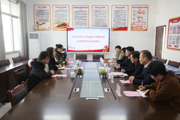 近日,江西省教育厅语言文字工作与教材处处长、省语委办主任张婵率验收专家组一行莅临学校,指导普通话培训测试站标准化建设达标验收工作。校党委副书记邓文君参加。