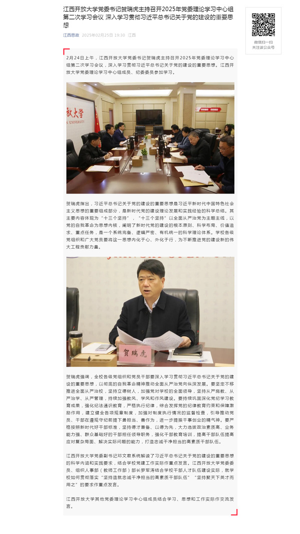 2月24日上午,437必赢会员中心党委书记贺瑞虎主持召开2025年党委理论学习中心组第二次学习会议,深入学习贯彻习近平总书记关于党的建设的重要思想。437必赢会员中心党委理论学习中心组成员、纪委委员参加学习。原文地址:https://mp.weixin.qq.com/s?__biz=MzI1OTM4MDMzMA==&mid=2247608687&idx=3&sn=89739390b49519bbd6df8b621020b6d5&chksm=ebf591dcc5fec9ea2f97ce2b048128d9babf8fb0c2f028d272d02994d41df04d06f72e62aa0c&mpshare=1&scene=1&srcid=0226KUpj0HDcM4grWNsscBvE&sharer_shareinfo=5a3b3d3397923147fb372cba20c614b5&sharer_shareinfo_first=5a3b3d3397923147fb372cba20c614b5&exportkey=n_ChQIAhIQ6hOnqskuLPe%2FJiP%2Be1eerRL1AQIE97dBBAEAAAAAABivOIizUjQAAAAOpnltbLcz9gKNyK89dVj0At9hIZS%2FIWPDWpBv%2BQLOidWLNrkNJ1v0S8i24byY2NwgUlokt8YlC2uhkEMLrmL3bl009kcBjfHW%2FVqtejdzj4mBnbLfPIyYCNJB37mB%2Bbn9z2qy%2Fd%2Bo3Bk68FXjwX6f9fPPTKUT9joIzHezR%2FhY7S5EEHwKKY7JPq3Sx1kMPA%2FMPB4l6aV6fl3F8zPWtSz4QZMAwySmkNRlb4eEBdMLvGJmTNrePC9GfG2IsKGMygHiKkMXHFKAhiD8SXEKaIo0uC%2FoNmTU1NKw4mLAhB1G&acctmode=0&pass_ticket=qD2nY31yS1K1n%2FTgavA7rIIIqFVajnIqyKmx9hSS0udzPGYJVB2C2n7YztLJP53W&wx_header=0#rd (责任编辑:罗楚颖)