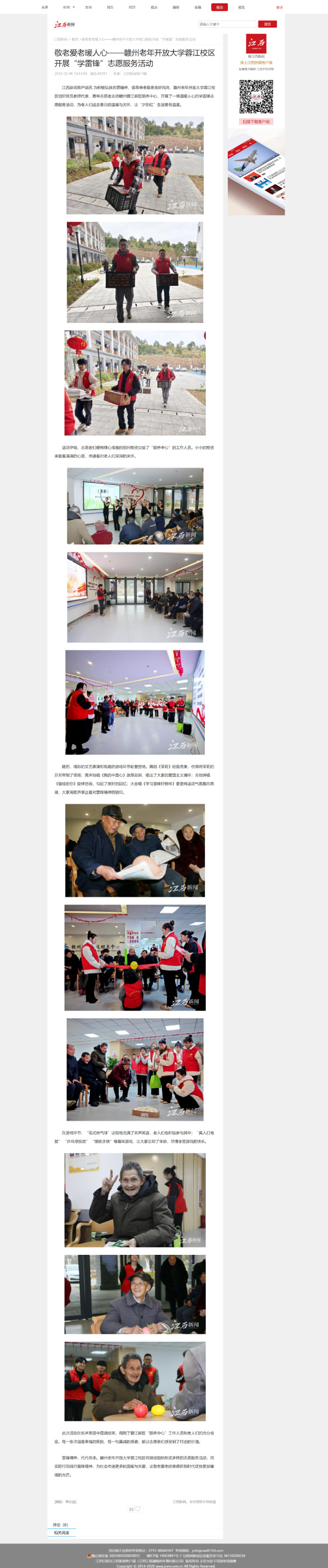 江西新闻:敬老爱老暖人心——赣州老年开放大学蓉江校区开展“学雷锋”志愿服务活动