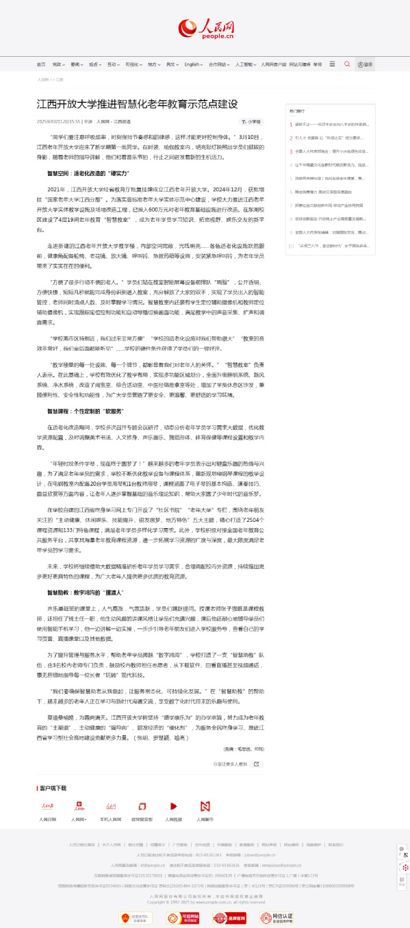 3月13日,人民网刊发《437必赢会员中心推进智慧化老年教育示范点建设》,报道必赢官网落实高标准老年大学实体示范中心建设具体举措。