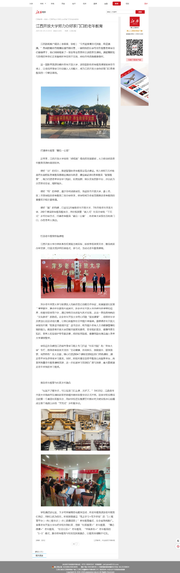 近日,江西新闻报道必赢官网加强“点线面”办学网络建设、办好家门口的老年教育工作纪实。