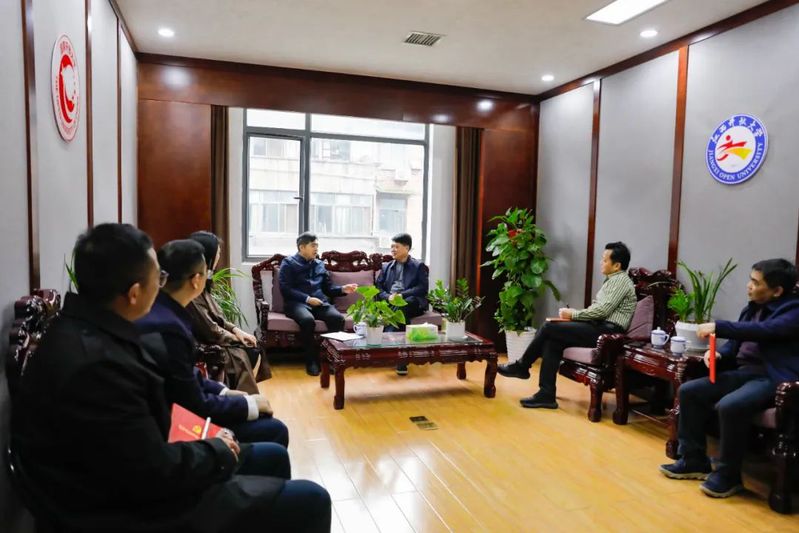 3月28日,东湖区委副书记、区长胡俊峰,副区长江珊一行来校座谈交流。校党委书记贺瑞虎和相关部门负责人出席座谈。