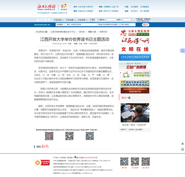 在第30个“世界读书日”来临之际,为进一步营造全民阅读氛围,推动书香校园建设,4月23日下午,437必赢会员中心开展了“数智赋能·阅见未来”系列读书活动。校党委书记贺瑞虎现场参与。活动吸引了众多老年学员、学生和阅读爱好者参与,大家共同沉浸于书香世界。